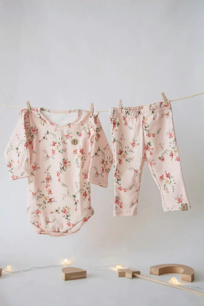 Body manga larga con calza en algodón interlok estampado.